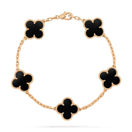 [AURORA]CLOVER 5 MOTIFS BLACK ONYX BRACELET