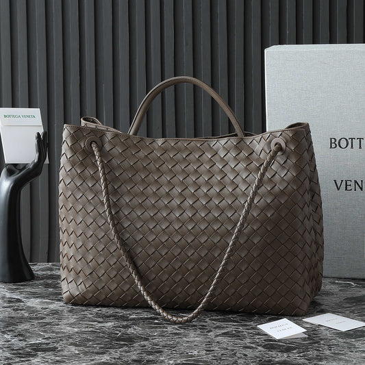 BOTTEGA VENETA 25S LARGE ANDIAMO 42 IN DARK BROWN CALFSKIN GOLD HARDWARE