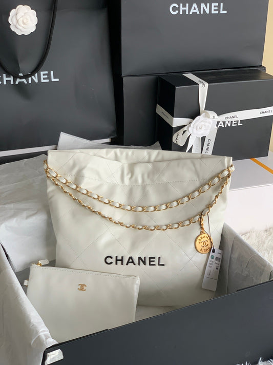 CC MEDIUM 37 HANDBAG IN WHITE SHINY CALFSKIN GOLD HARDWARE