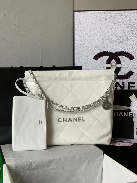 CC MEDIUM 37 HANDBAG IN WHITE SHINY CALFSKIN SILVER HARDWARE