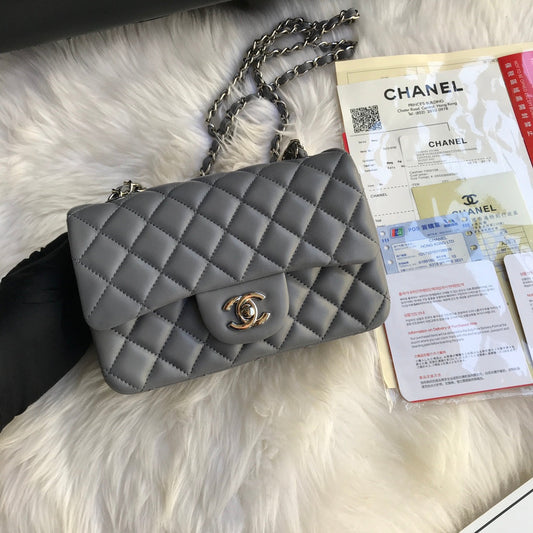 CC MINI 20 FLAP BAG IN DARK GREY CALFSKIN