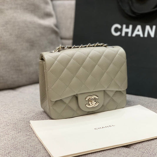 MINI SQUARE FLAP BAG 17CM GREY CAVIAR SILVER HARDWARE