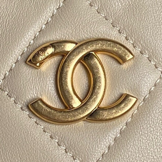 HOBO BAG 24 IN BEIGE CALFSKIN GOLD DOUBLE C THICK CHAIN