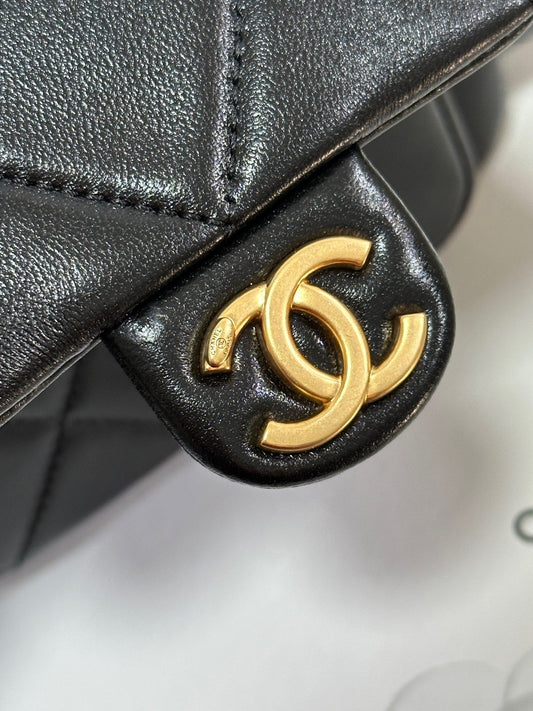 CC HOBO 28CM BLACK LAMBSKIN GOLD HARDWARE