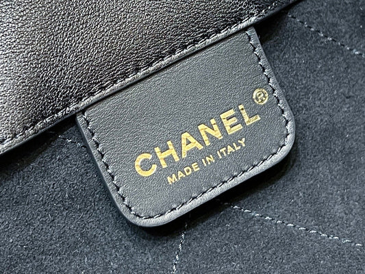 CC LARGE 33 HOBO SHOPPING BAG IN BLACK CALFSKIN