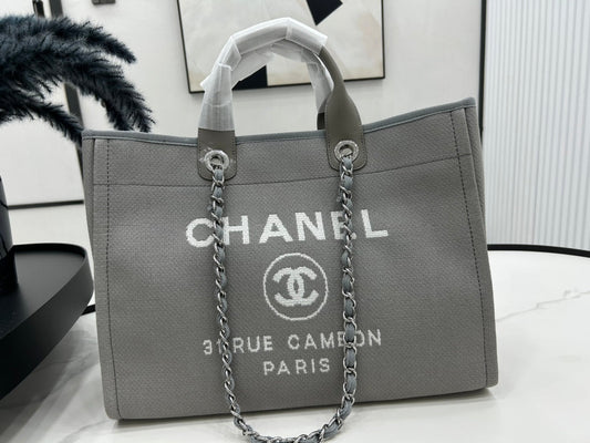 CC DEAUVILLE LARGE 38 TOTE BAG IN GREY CANVAS WITH WHITE LOGO