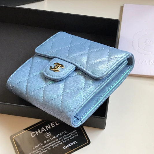 CC FLAP CARD HOLDER 11.5 SKY GRAINED CALFSKIN GOLD ICON