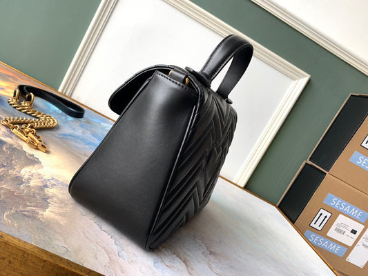 GG Marmont 21cm Mini Top Black Calfskin Gold Hardware
