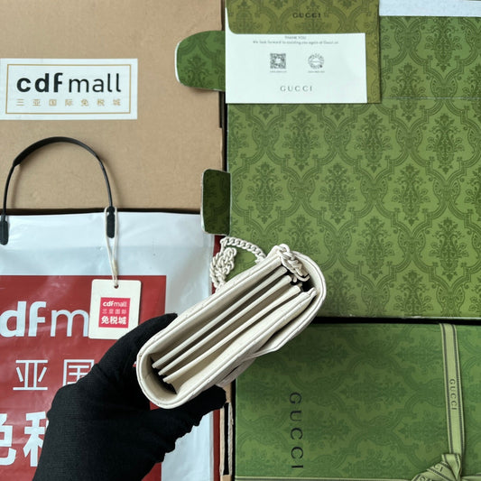 GG MARMONT 20 MINI CHAIN BAG IN WHITE CALFSKIN