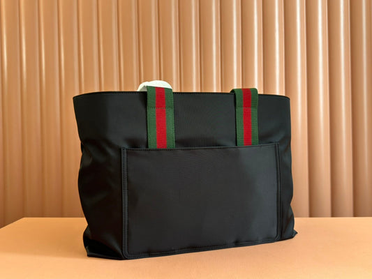 WEB STRIPE-STRAP TOTE BAG 45 IN BLACK CANVAS