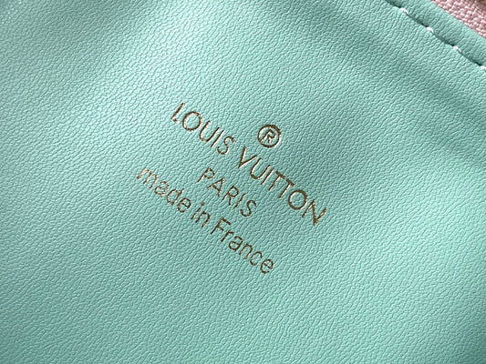 COUSSIN PM 26 IN WHITE BLUE MONOGRAM EMBOSSED LAMBSKIN GOLD HARDWARE