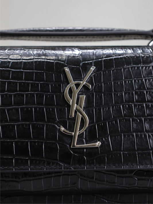 SUNSET SMALL BAG 19 IN BLACK CROCODILE-EMBOSSED CALFSKIN SILVER HARDWARE