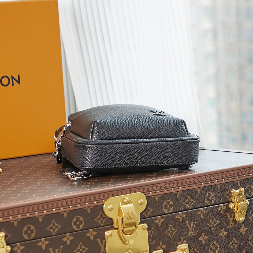 AVENUE SLINGBAG 31 IN BLACK TAIGA LEATHER