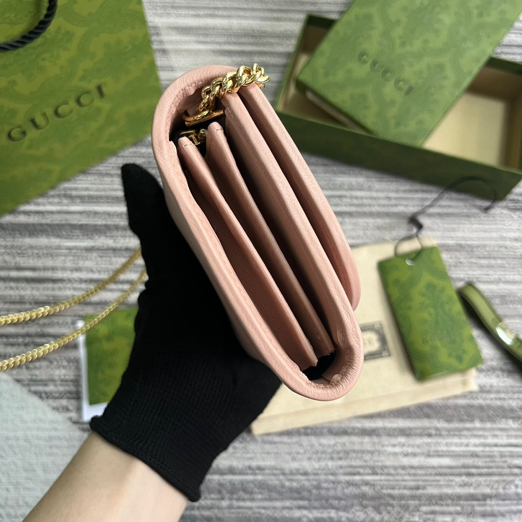 BLONDIE INTERLOCK MINI SHOULDER BAG 12 IN LIGHT PINK CALFSKIN GOLD CHAIN
