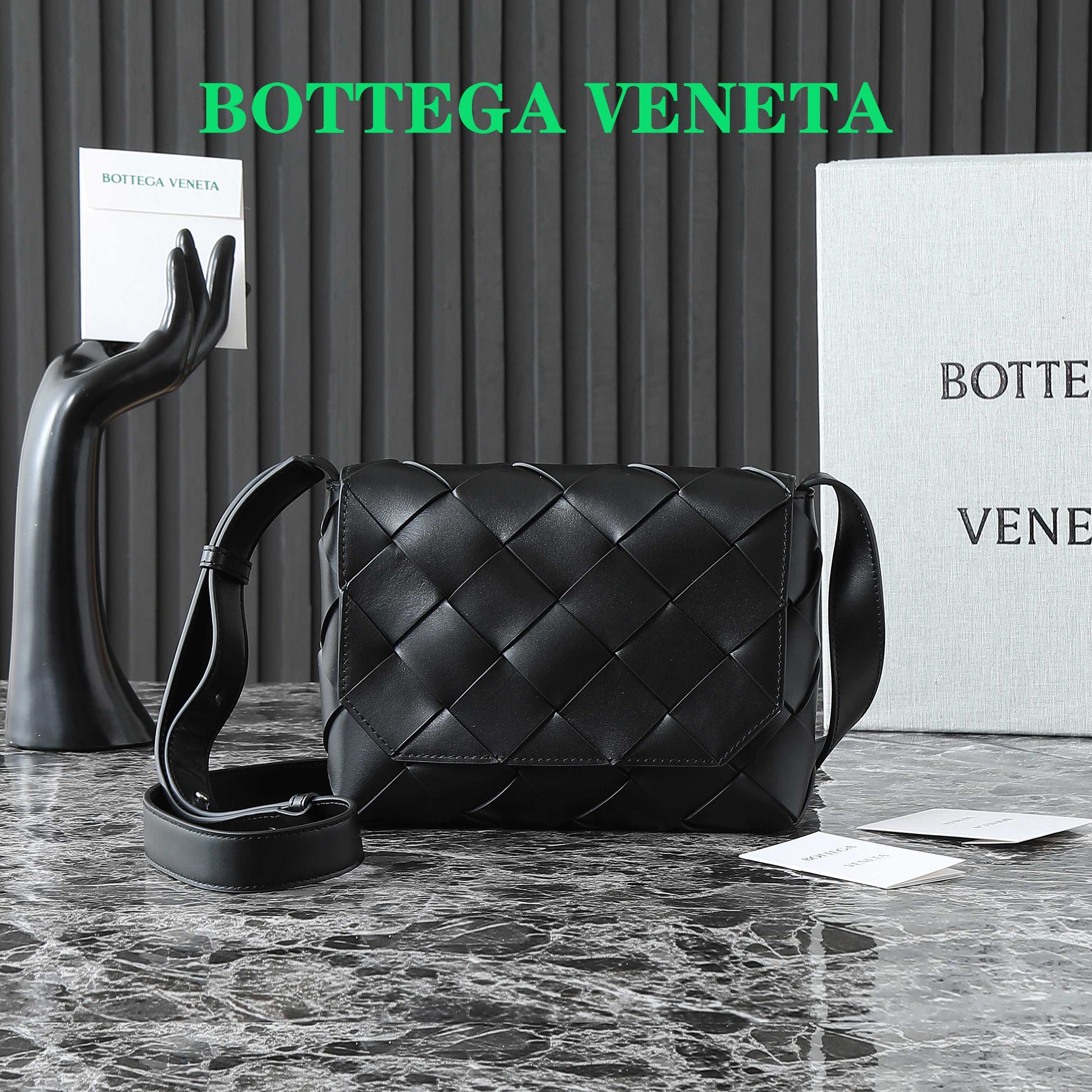 BOTTEGA VENETA 25S DIAGO 22 IN BLACK CALFSKIN PATENT SILVER HARDWARE