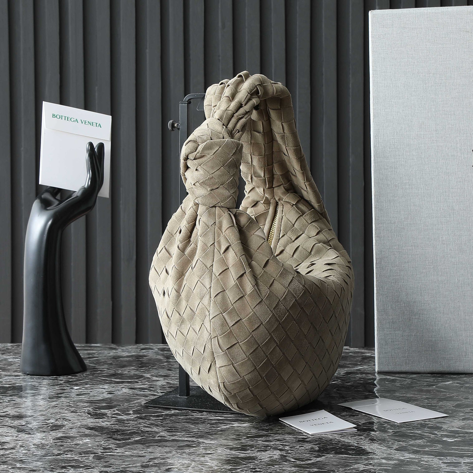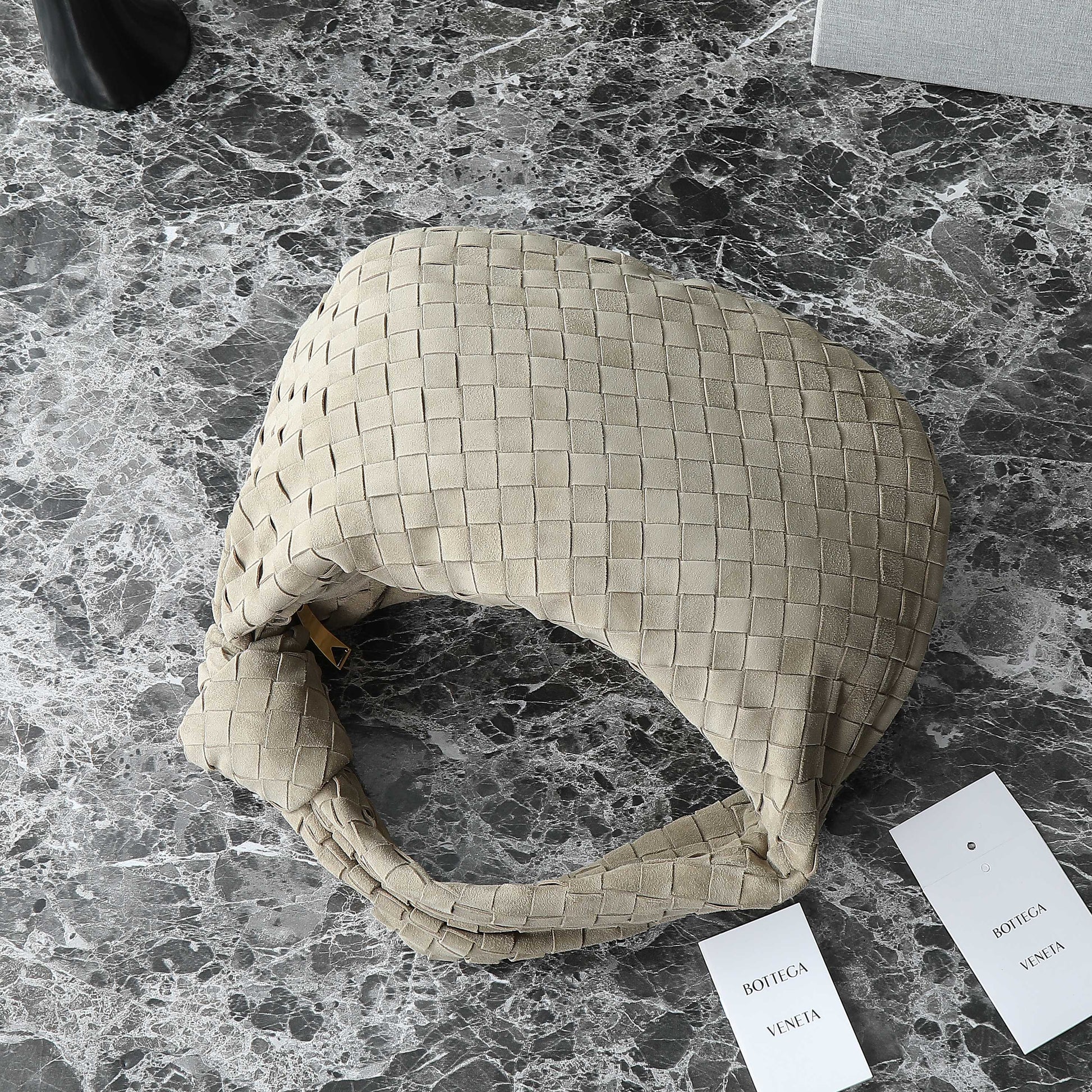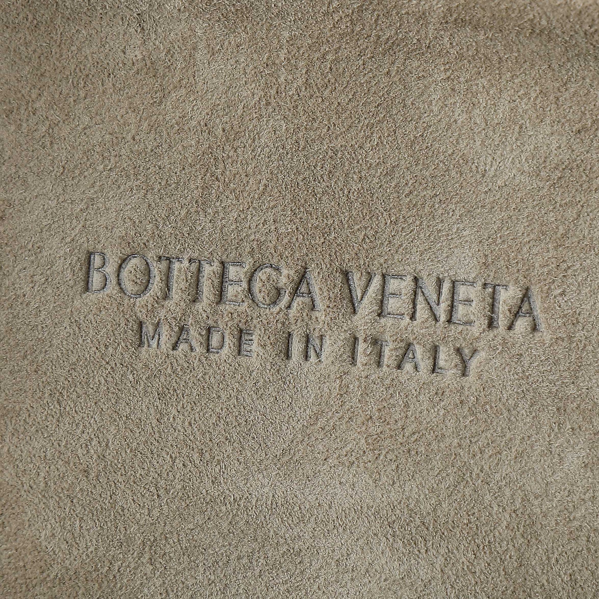 BOTTEGA VENETA 25S SMALL JODIE 36 IN MUTED TAUPE SUEDE GOLD HARDWARE