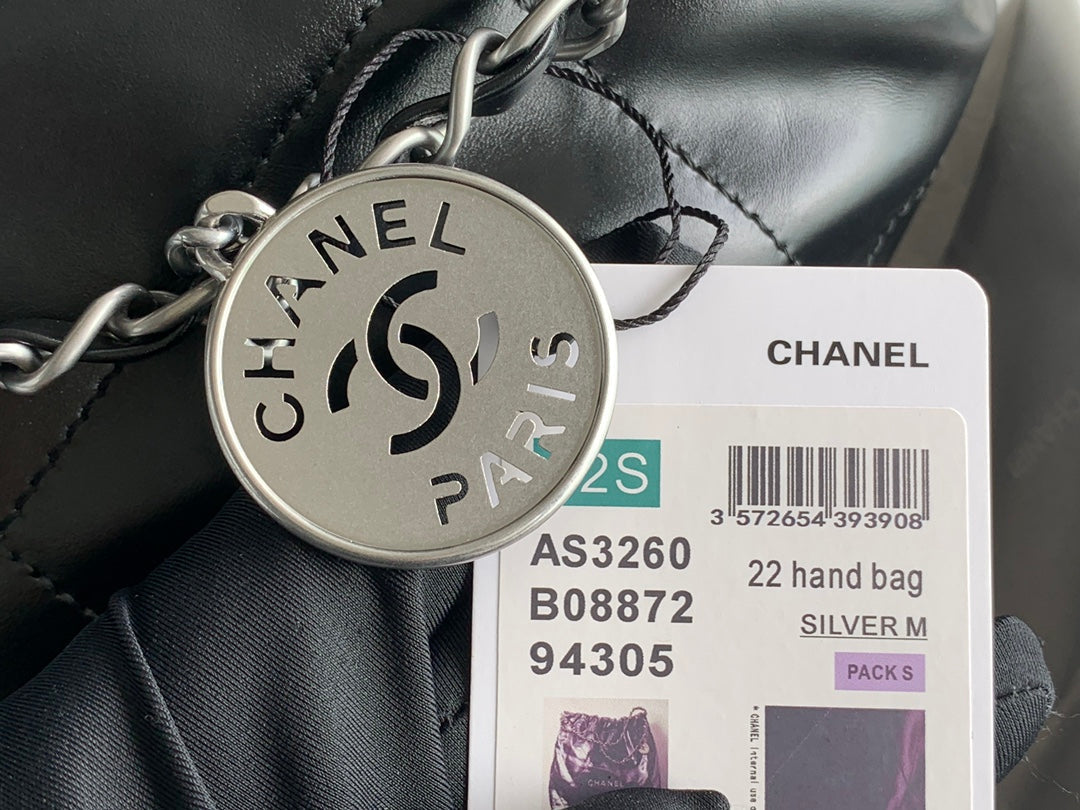 CC MEDIUM 37 HANDBAG IN BLACK SHINY CALFSKIN SILVER HARDWARE