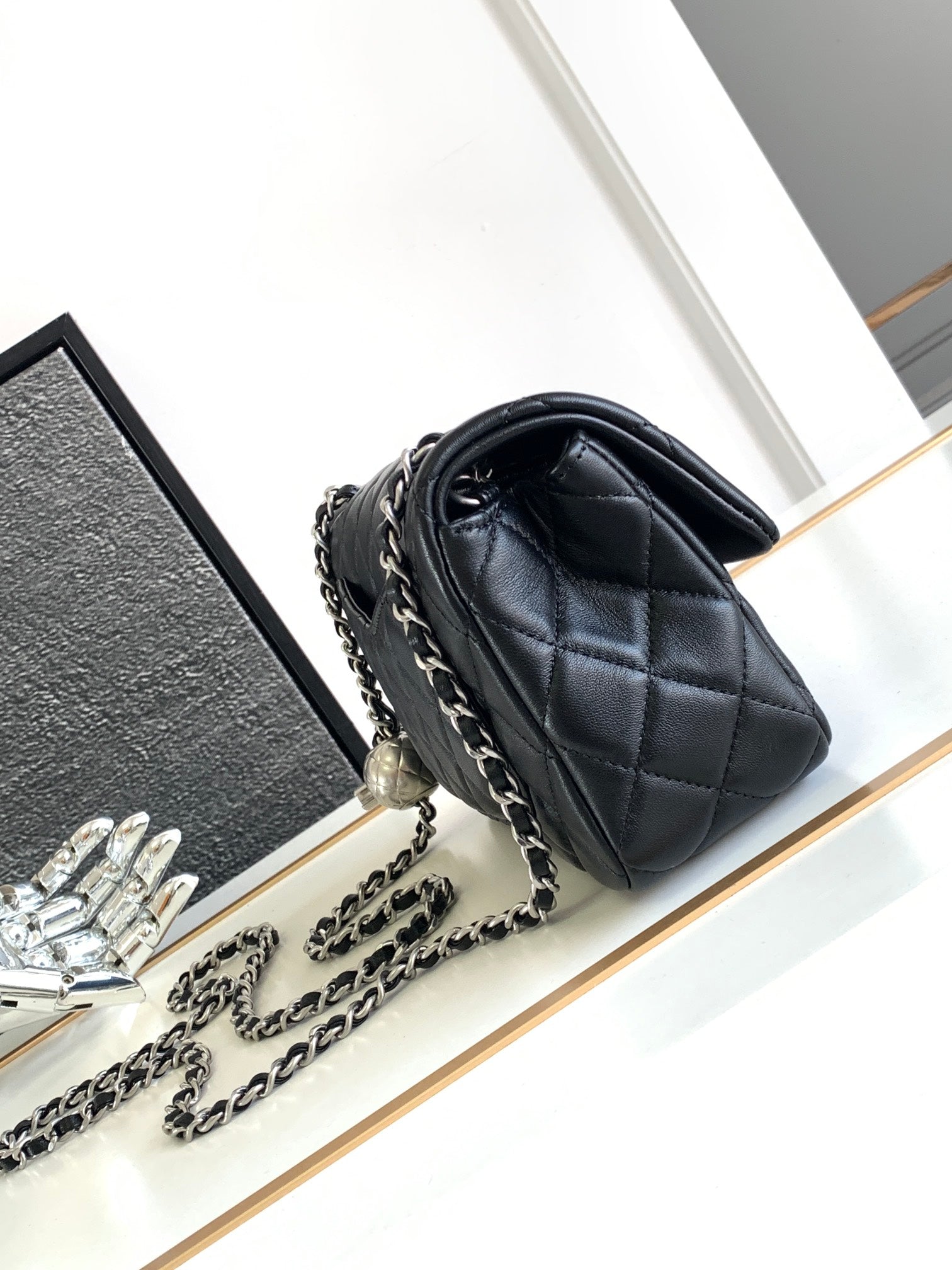 CC SMALL 20 FLAP BAG IN BLACK CALFSKIN