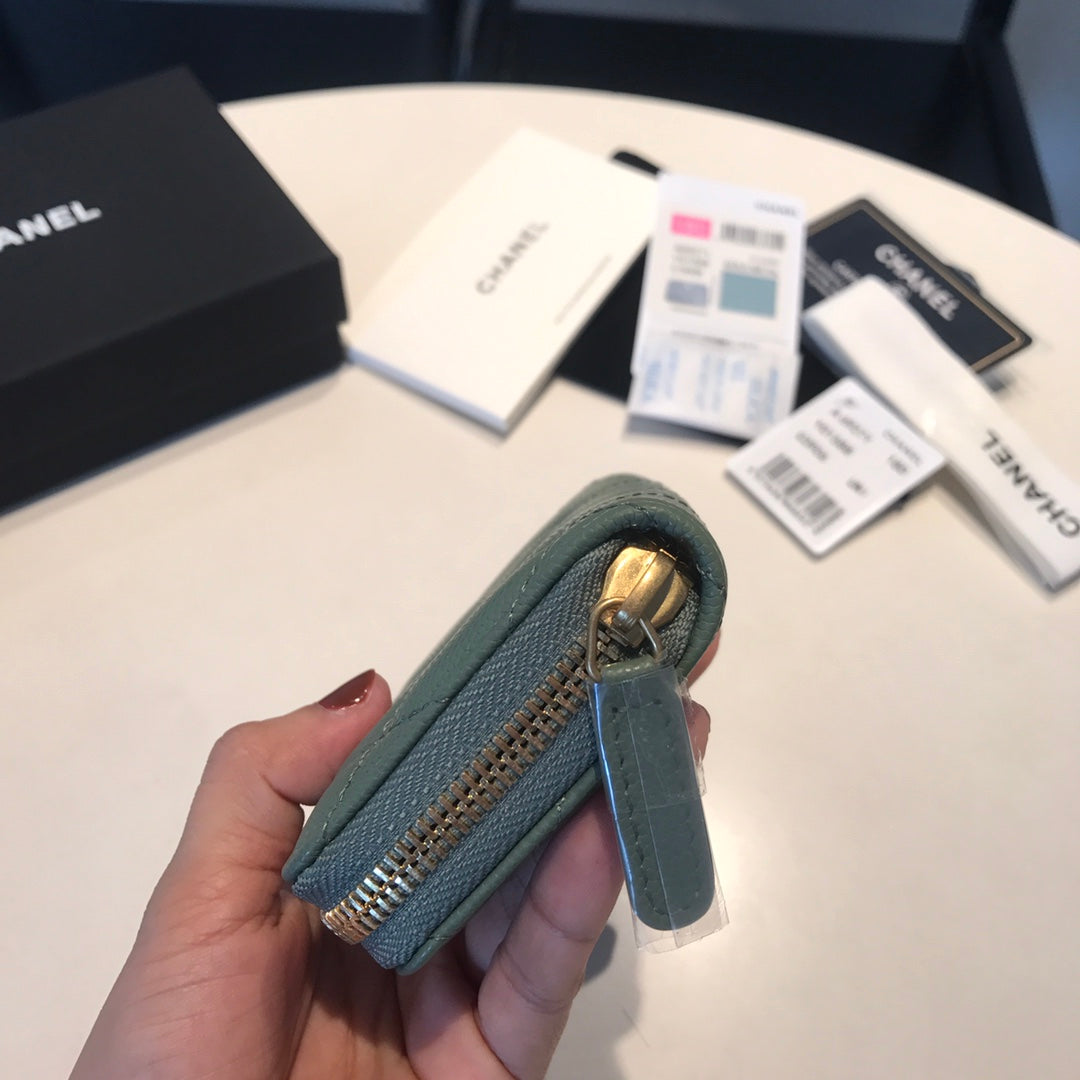 CC ZIPPED COIN BASIC PURSE 11 TURQUOISE CALFSKIN GOLD ICON
