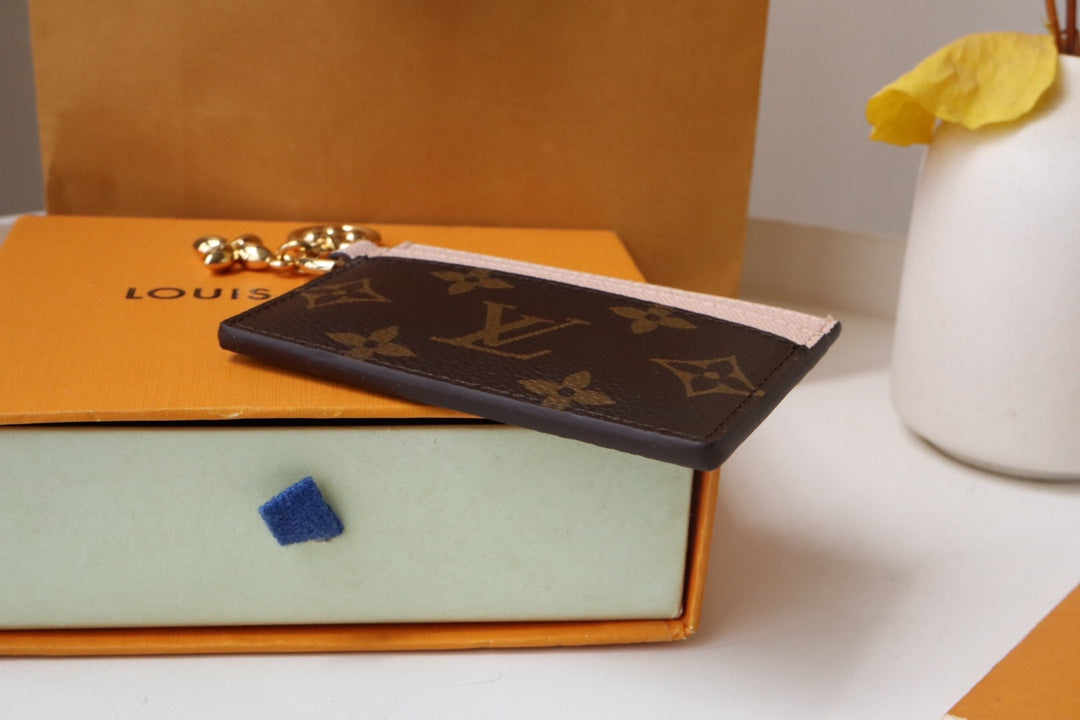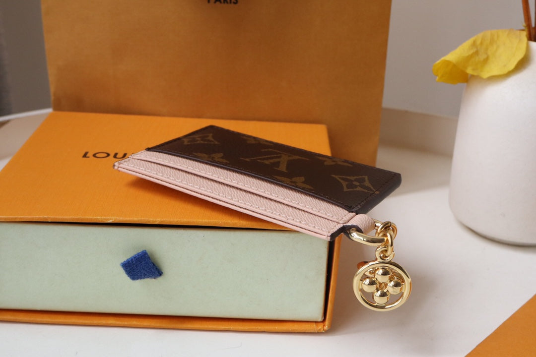 CHARM CARD HOLDER BROWN PINK MONOGRAM CANVAS