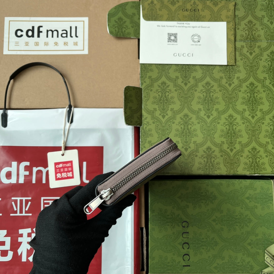 FULL-ZIP WALLET 19 IN MOSS GREEN EMBOSSED CALFSKIN