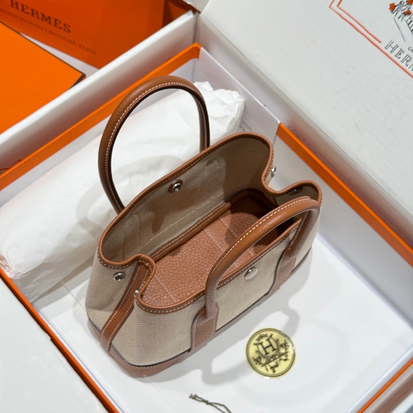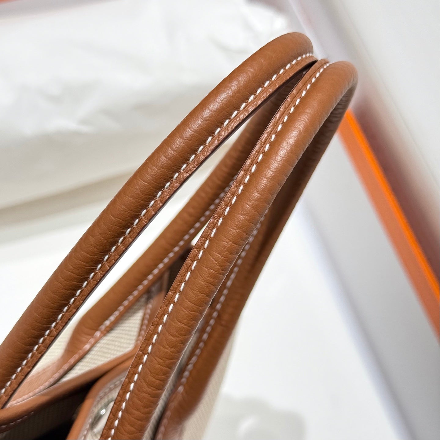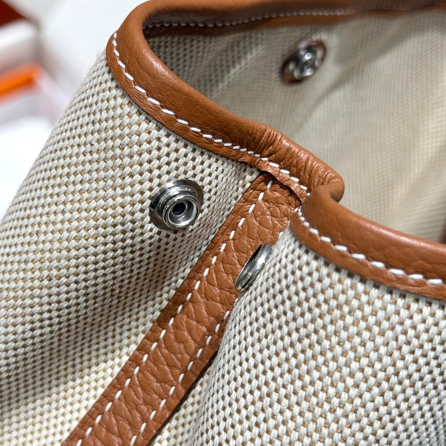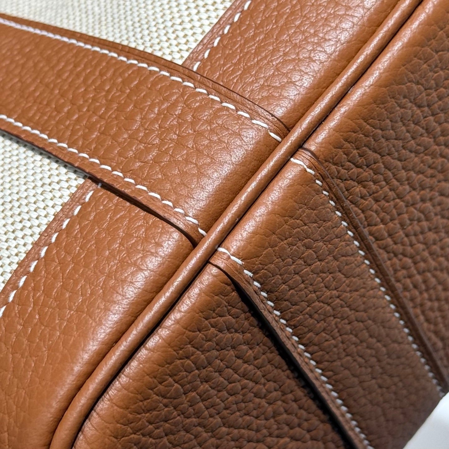 GARDEN PARTY 23CM IN WHITE TOILETS COTTON CANVAS AND BROWN CALFSKIN