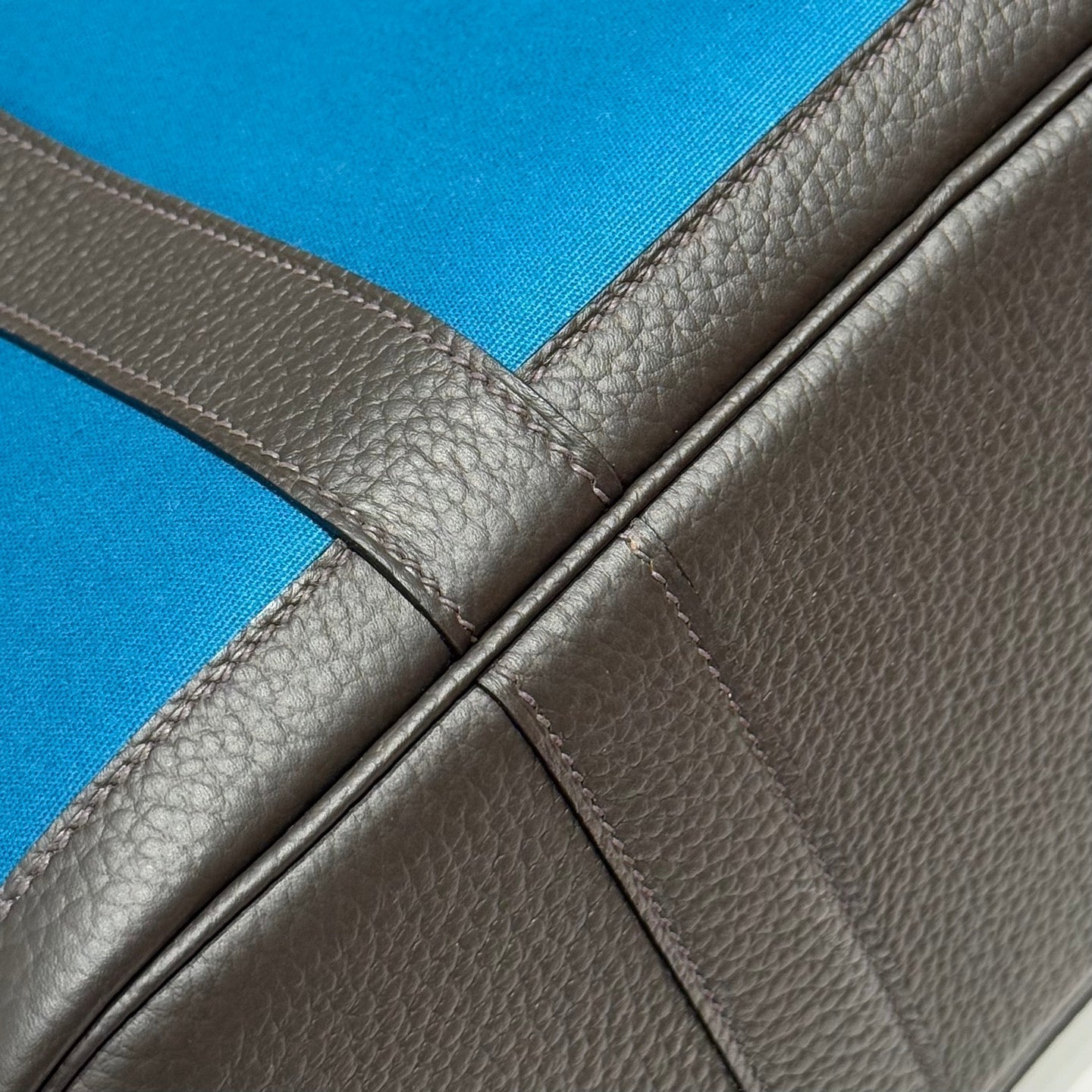 GARDEN PARTY 30CM IN BLUE TOILETS COTTON CANVAS AND BLACK CALFSKIN