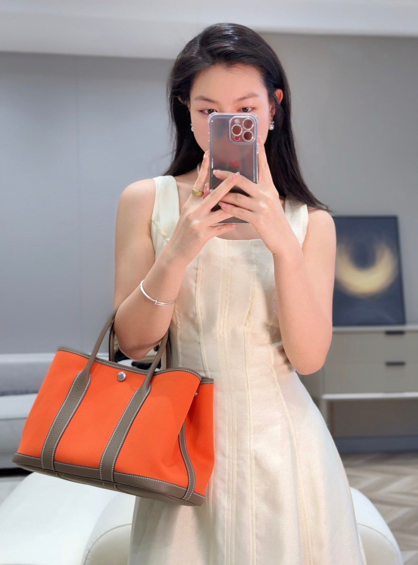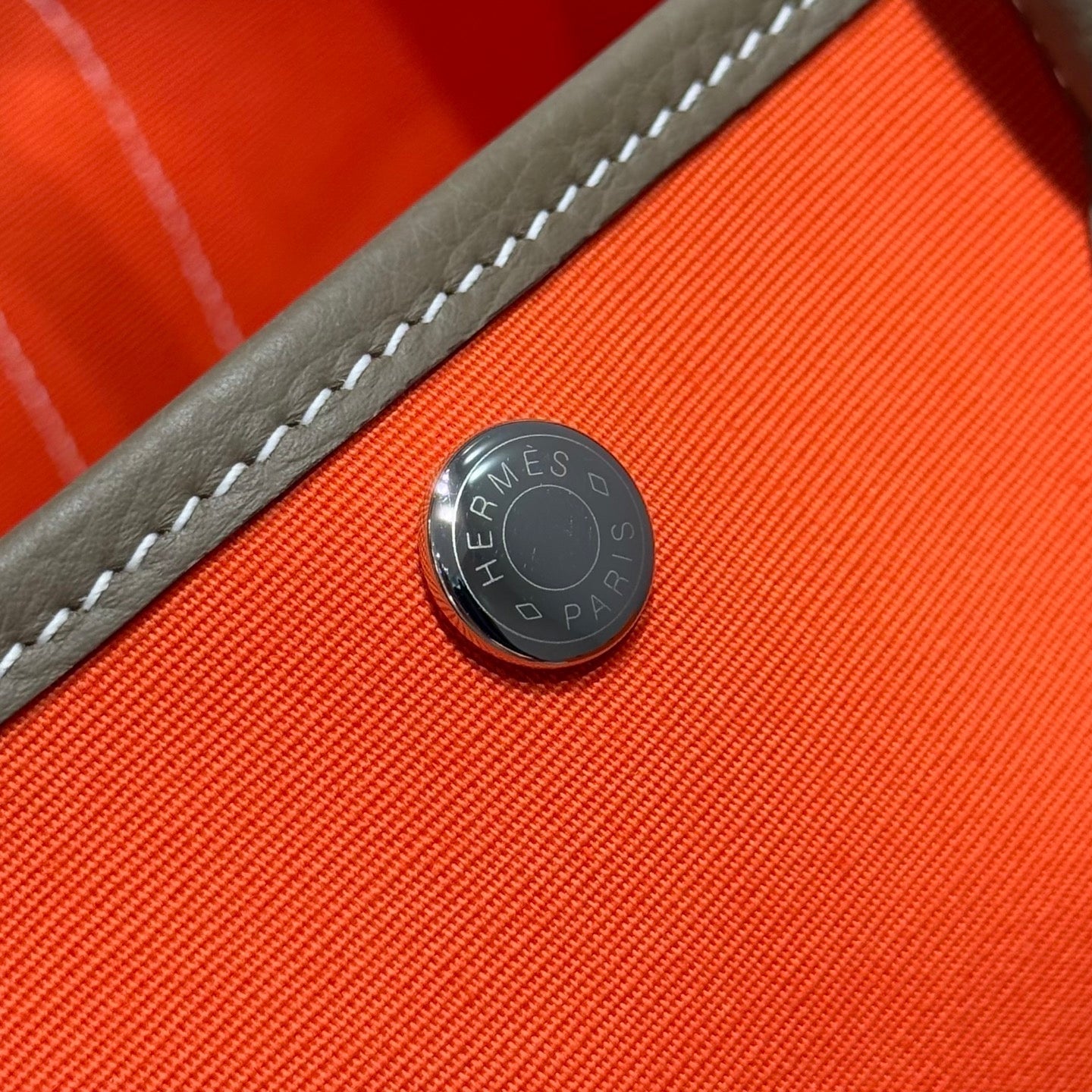 GARDEN PARTY 30CM IN ORANGE MINIMUM TOILETS COTTON CANVAS AND BROWN CALFSKIN