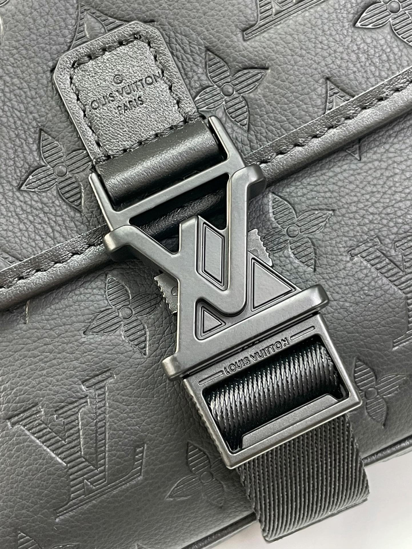 GETAWAY MESSENGER 18 IN BLACK EMBOSSED CALFSKIN