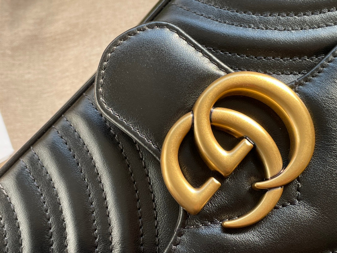 GG MARMONT MATELASSÉ SMALL 22 BAG BLACK CALFSKIN