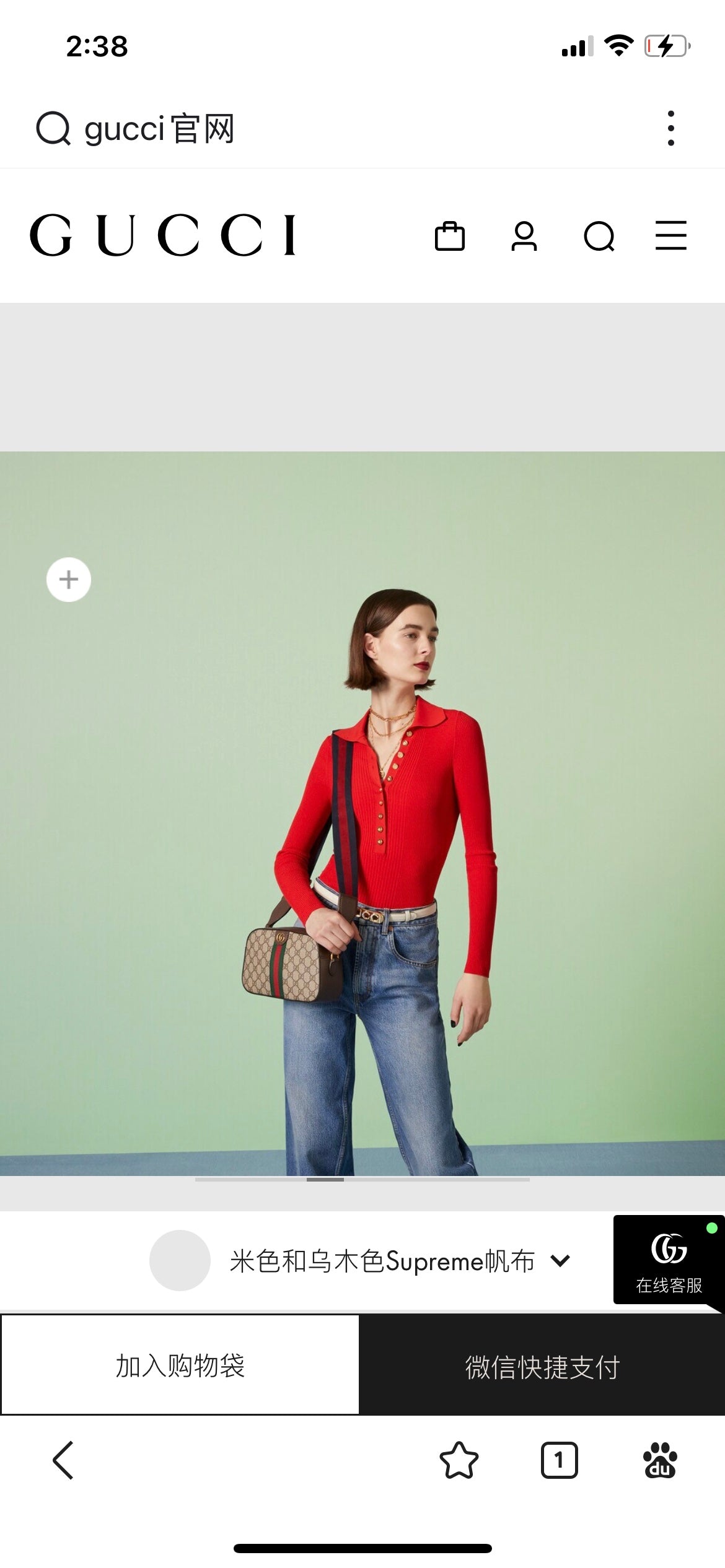 GG OPHIDIA SMALL 24 IN BEIGE CANVAS AND BROWN CALFSKIN