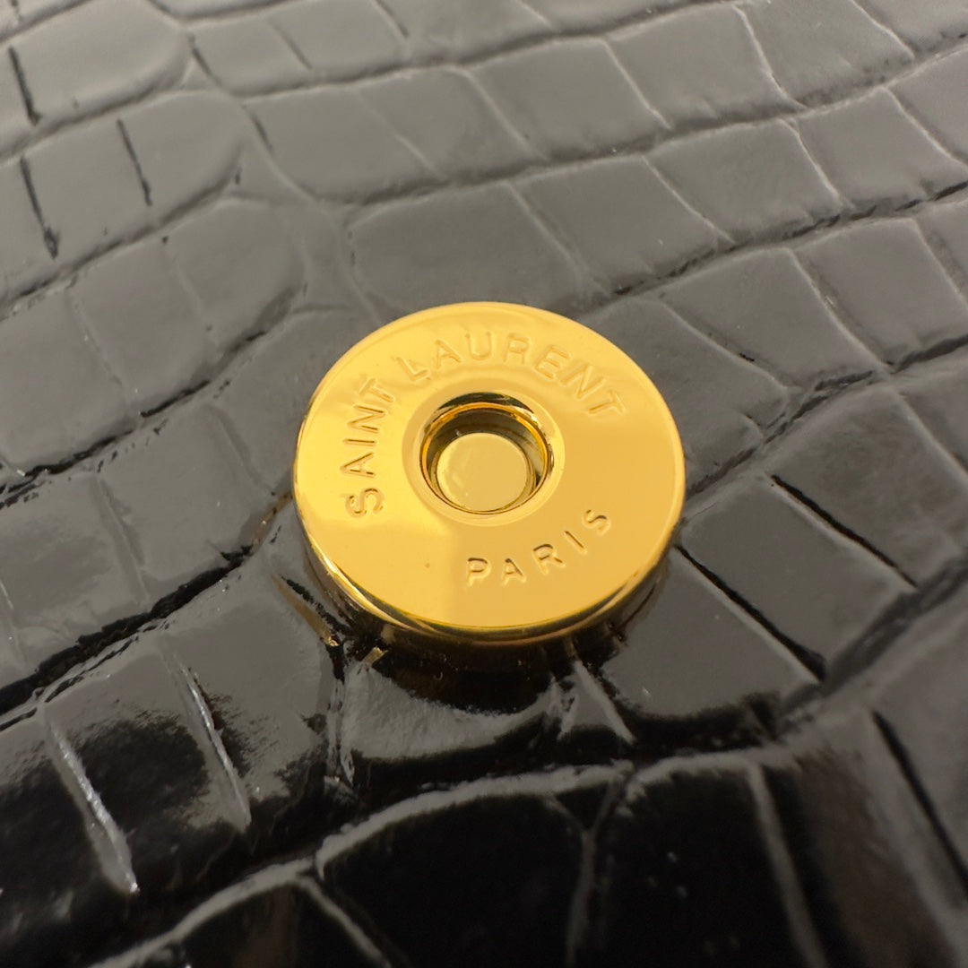 KATE TASSEL 20 BLACK CROCODILE PATTERN CALFSKIN WITH GOLD LOGO