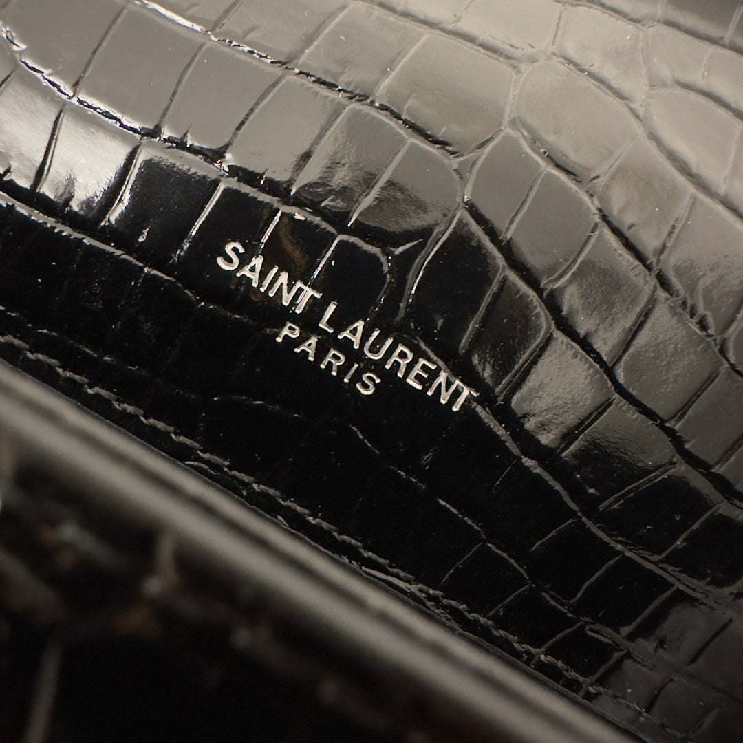 KATE TASSEL 20 BLACK CROCODILE PATTERN CALFSKIN WITH SILVER LOGO