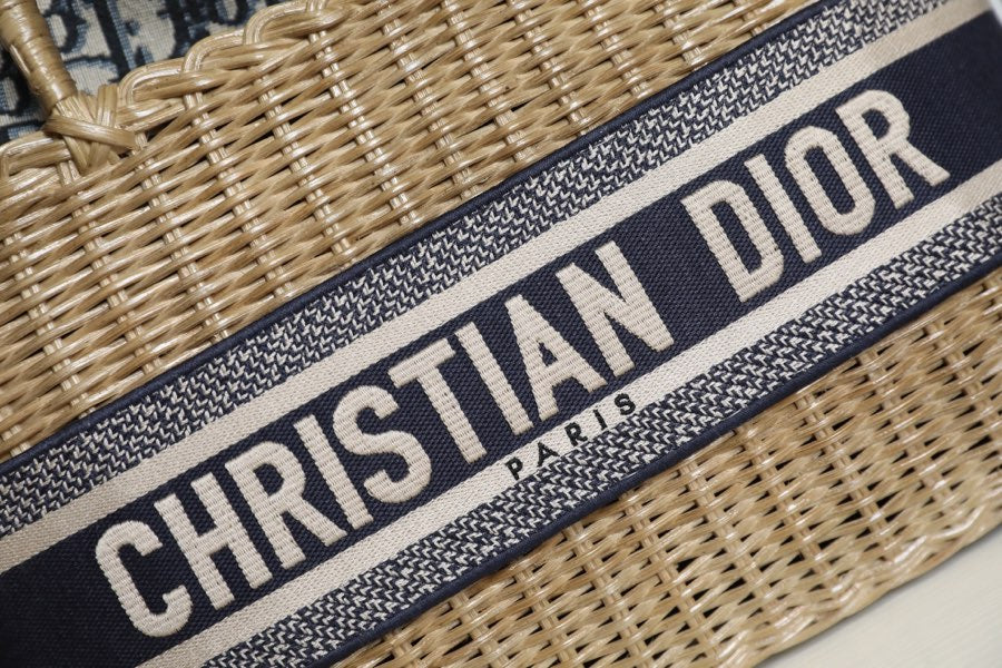 LARGE 28 BASKET BAG IN BLACK OBLIQUE JACQUARD AND BEIGE WICKER