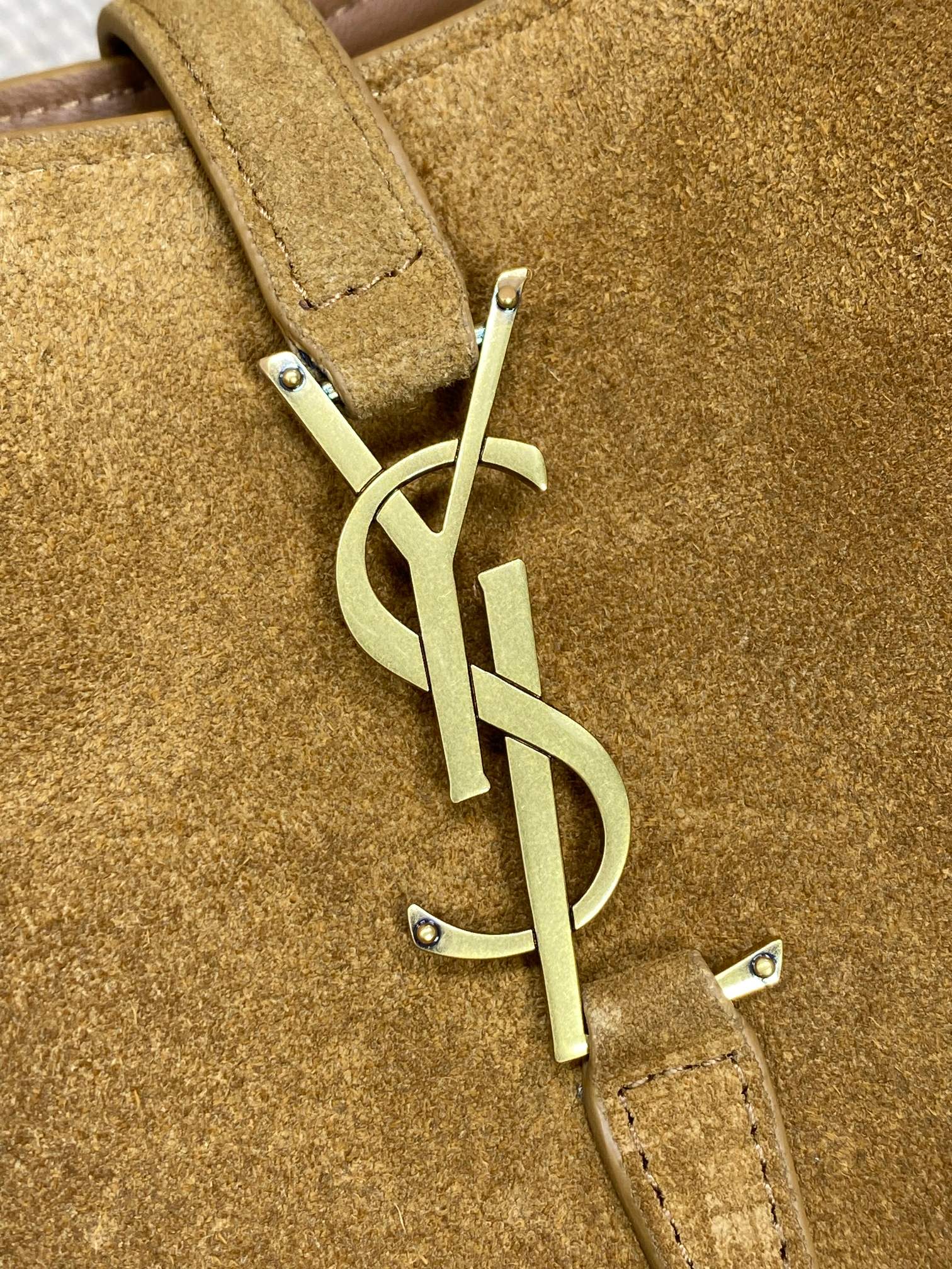 LE 37 SMALL BUCKET BAG 25 IN BROWN SUEDE GOLD HARDWARE
