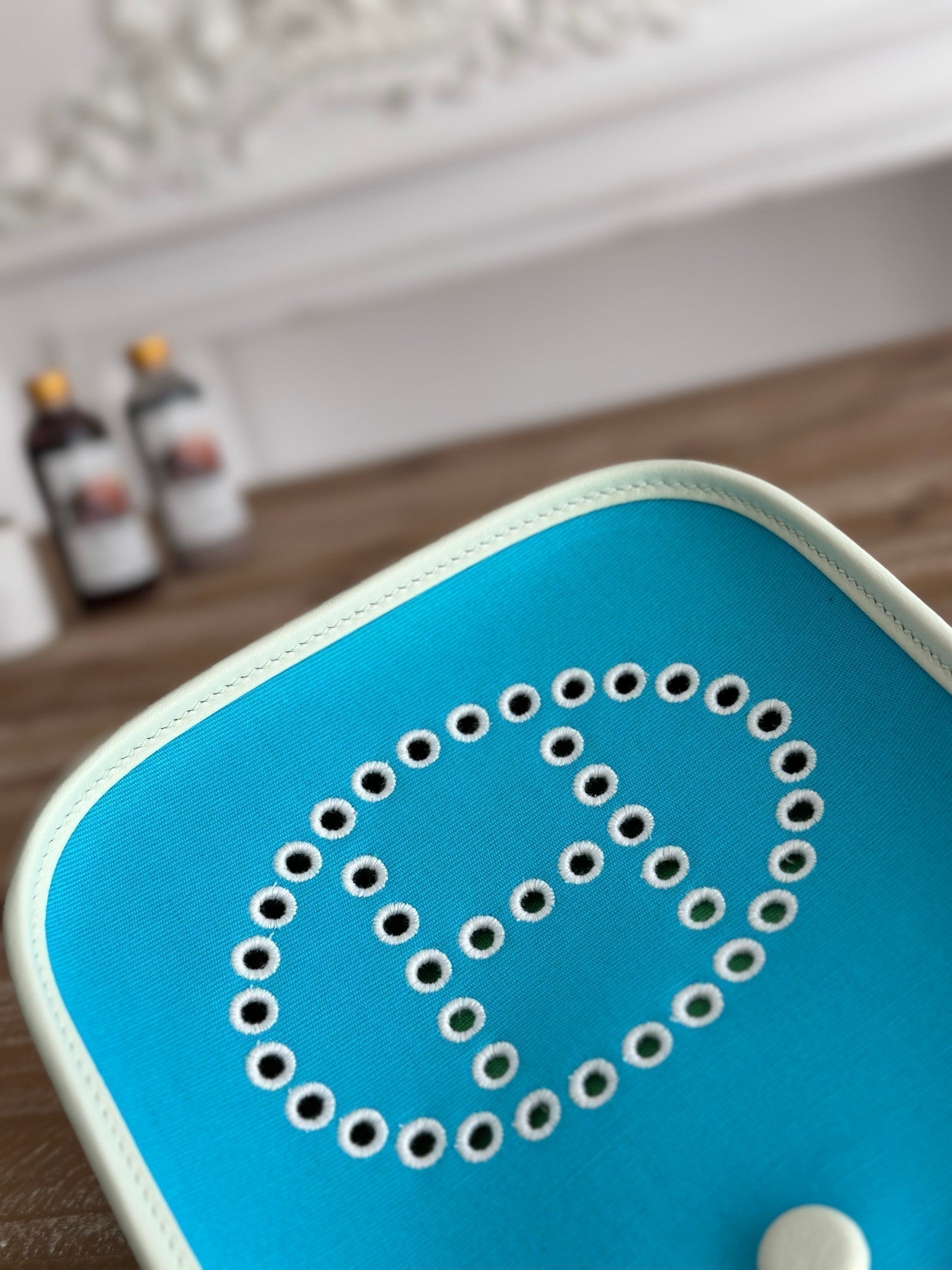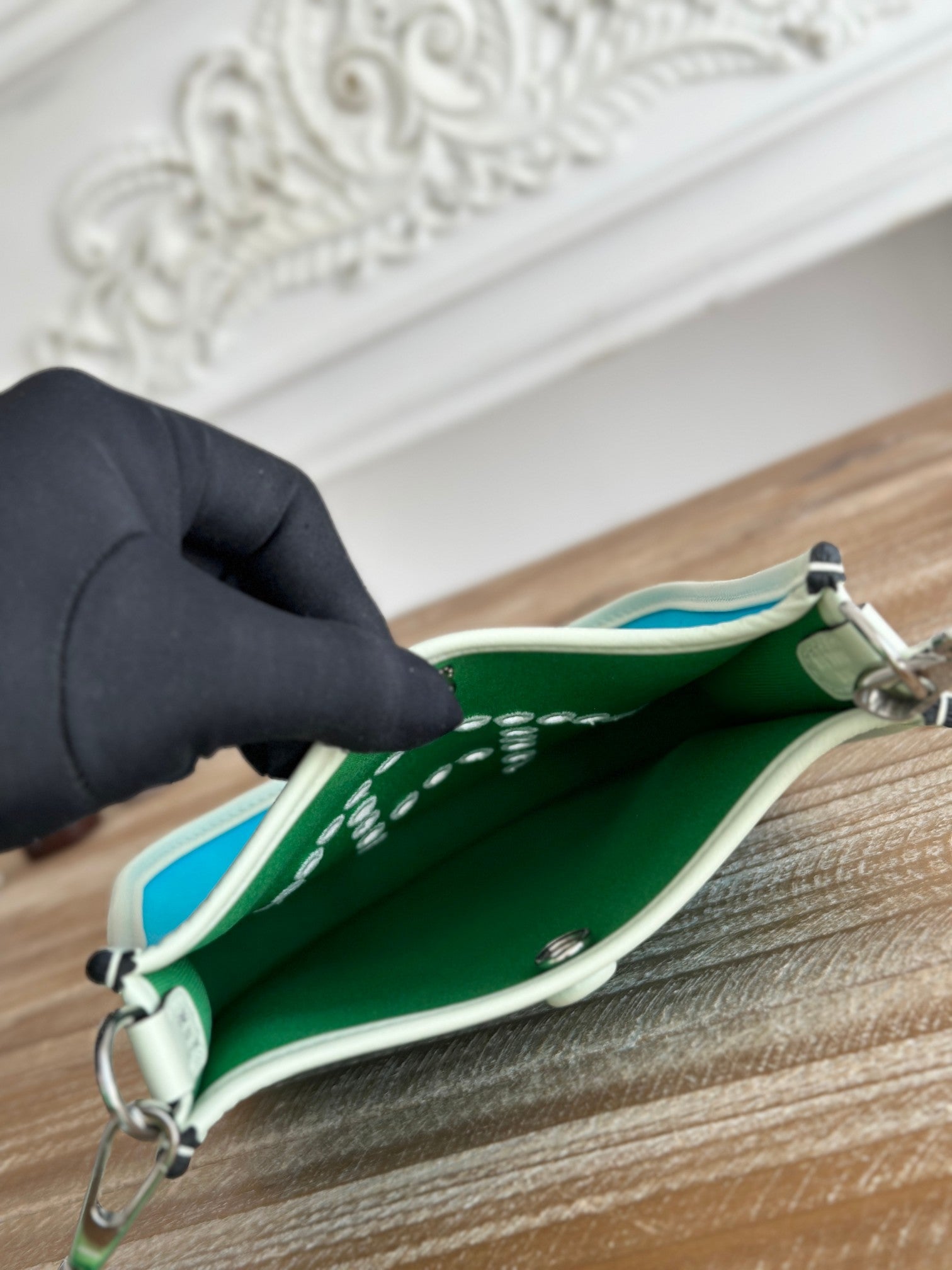 MINI NEO 17 EVELYNE BAG IN SKY BLUE CANVAS AND WHITE CALFSKIN