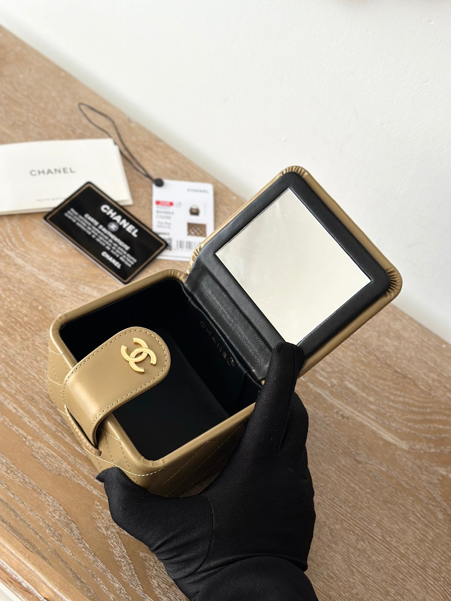 MINI VINTAGE COSMETIC BAG 11 IN CAPE PALLISER SHINY CALFSKIN GOLD HARDWARE