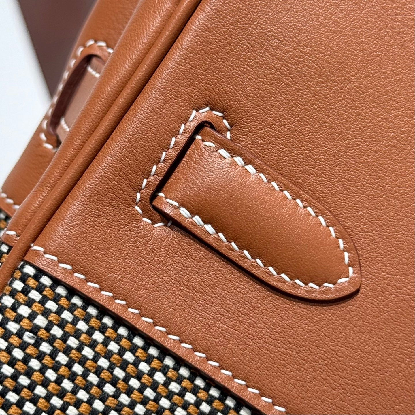 QUADRILLE BIRKIN 30CM IN GOLD SWIFT CALFSKIN AND BLACK/WHITE/BROWN TOILE CANVAS