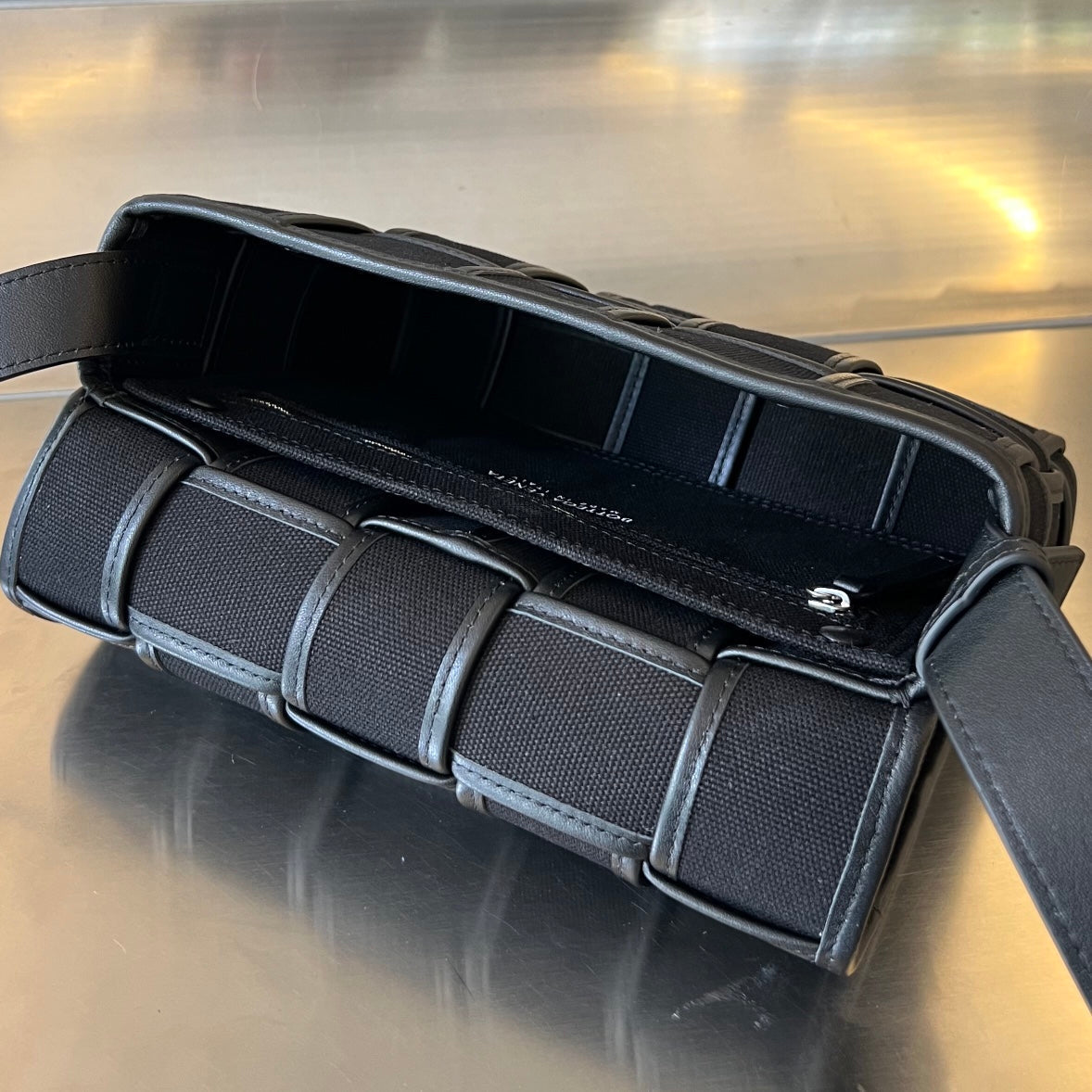SMALL CASSETTE 23 IN BLACK CANVAS AND CALFSKIN TRIM