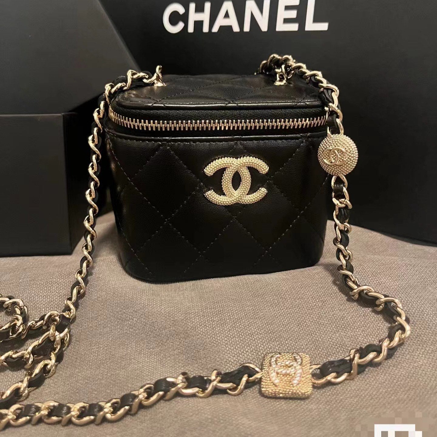 SMALL VANITY CASE 11 IN BLACK CALFSKIN GOLD HARDWARE
