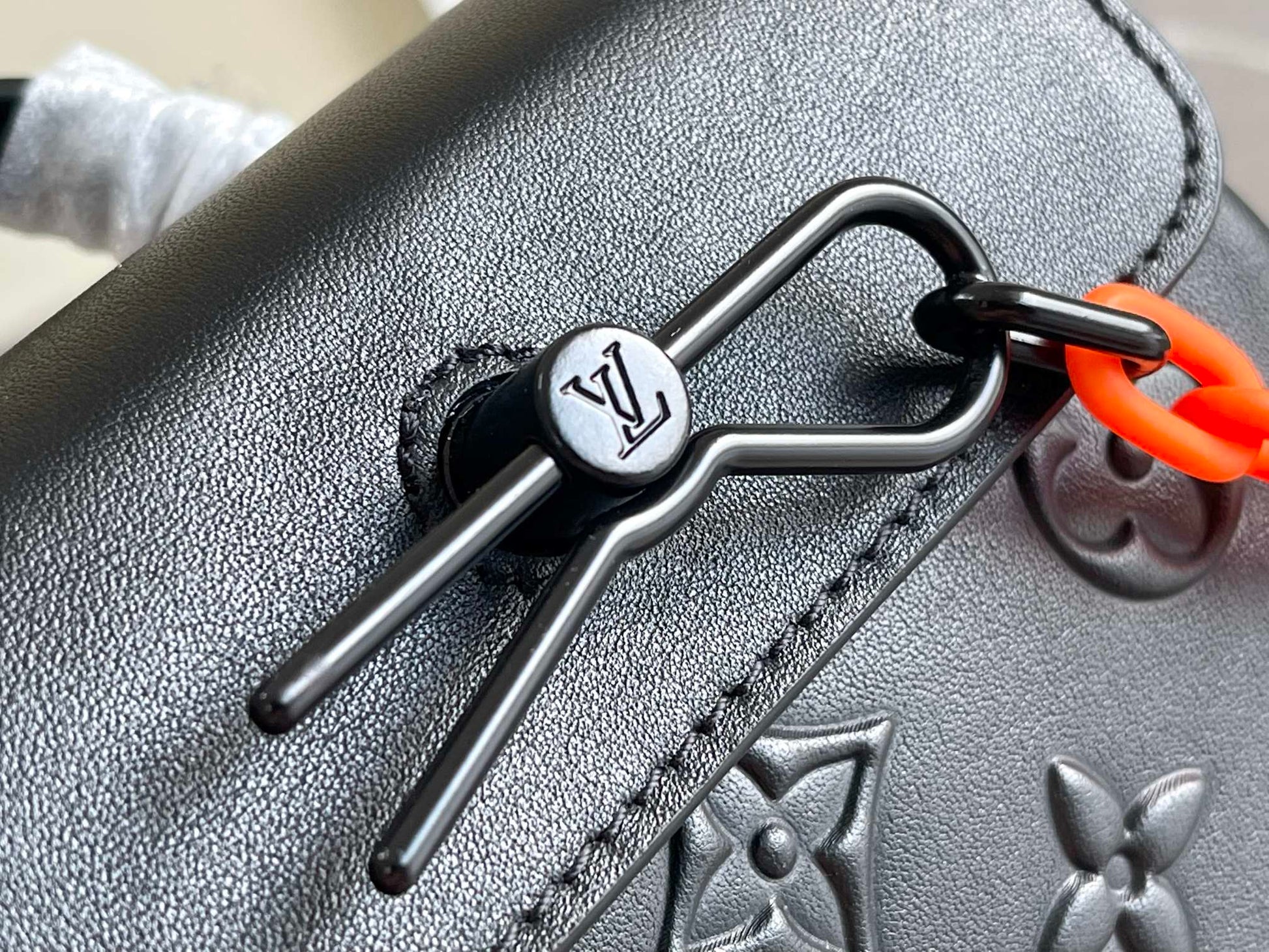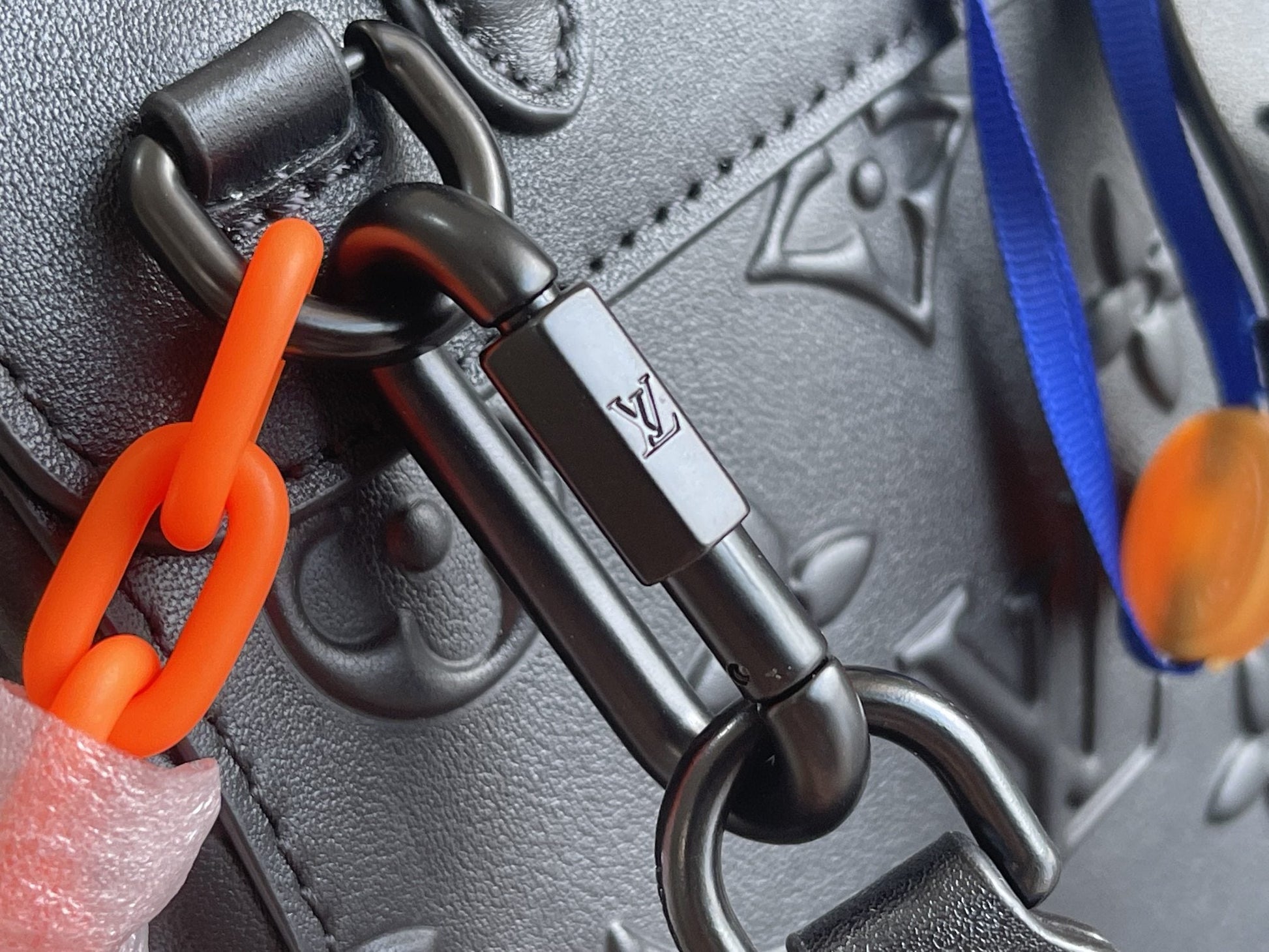 ?Black mat color hardware with orange chain