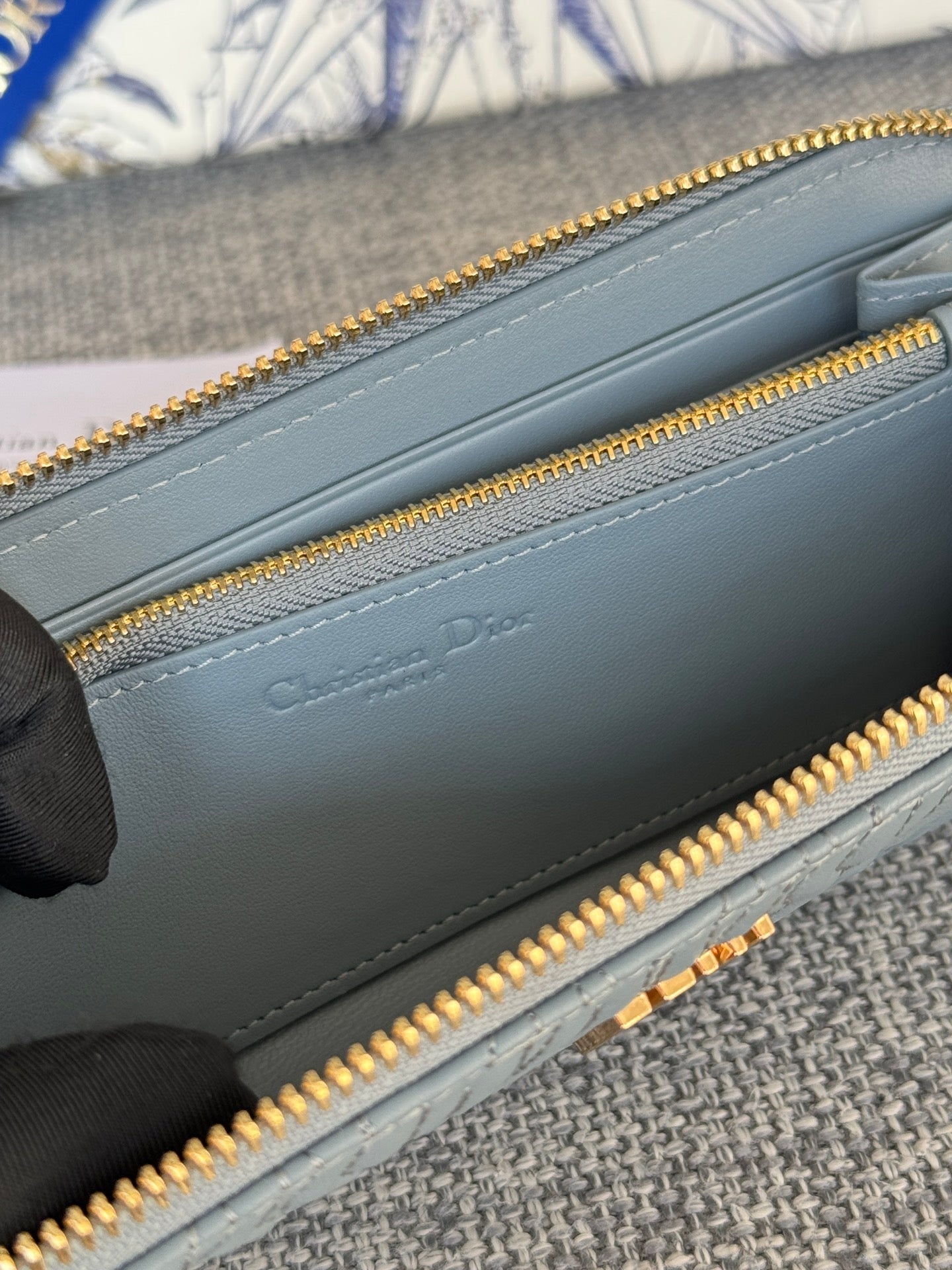 VERTICAL LONG ZIP WALLET 20 IN BABY BLUE QUILTED ALLOVER CALFSKIN